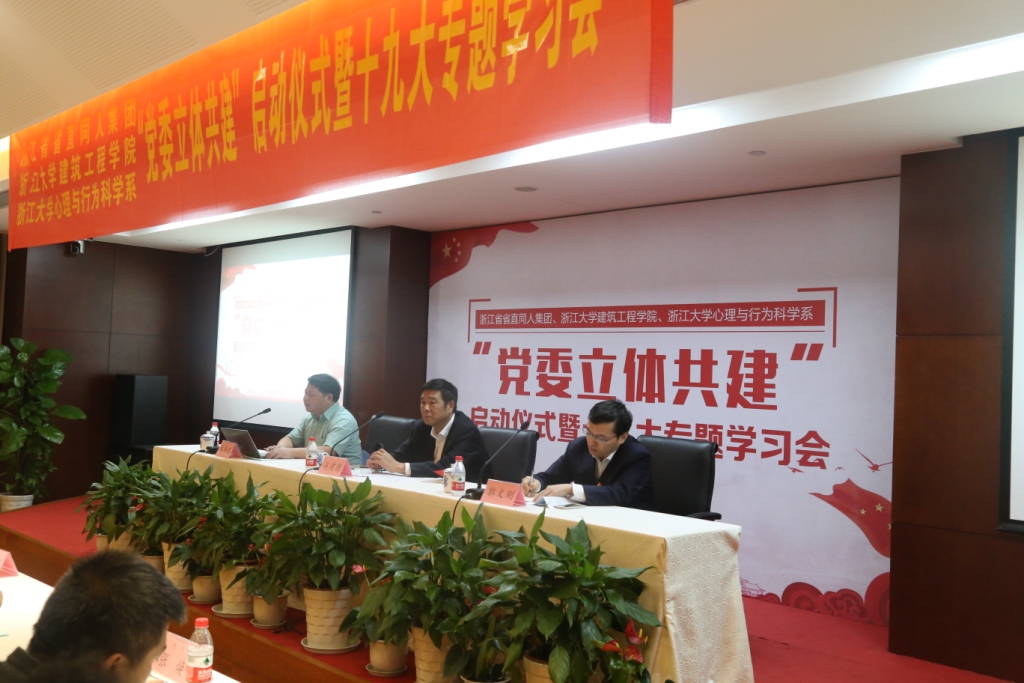 党的十九大刚刚胜利闭幕,11月3日省直同人集团与浙江大学建筑工程学院、浙江大学心理与行为科学系在同人集团大厦隆重举行“党委立体共建”工程启动仪式。